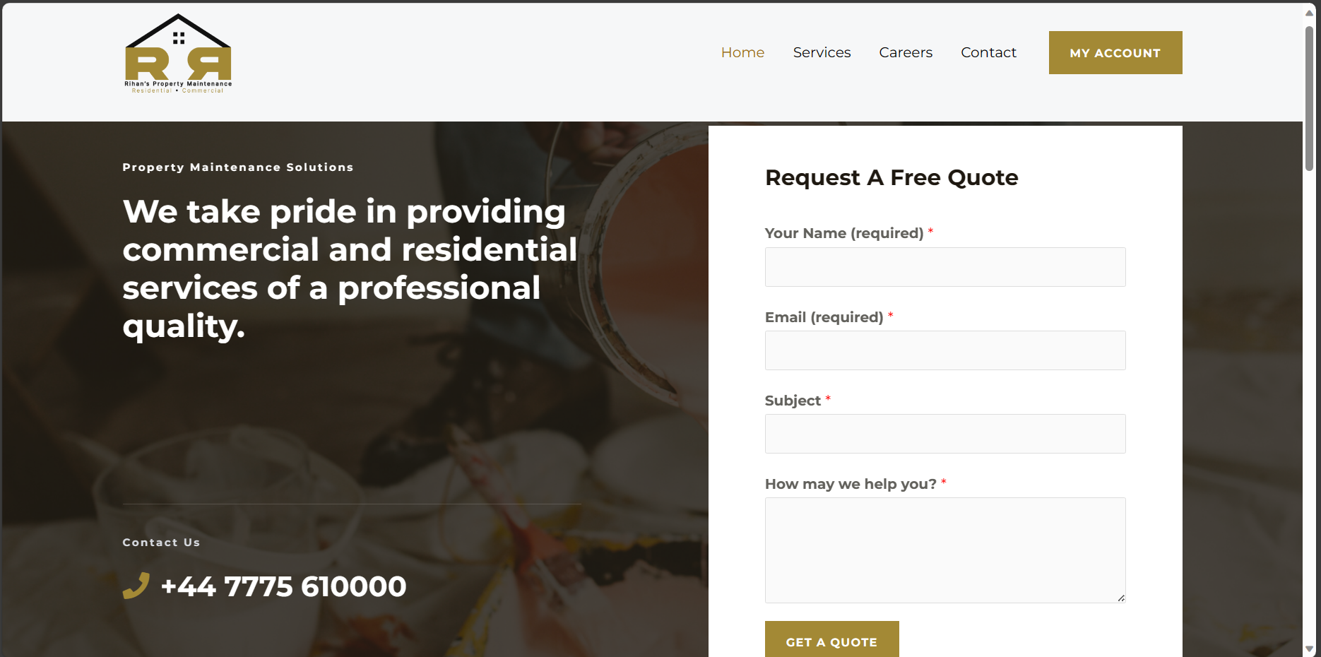 Rihan's Property Maintenance, a new player in the property management and maintenance sector, approached our team seeking a website. As a new business, Rihan's Property Maintenance seeked an online presence.