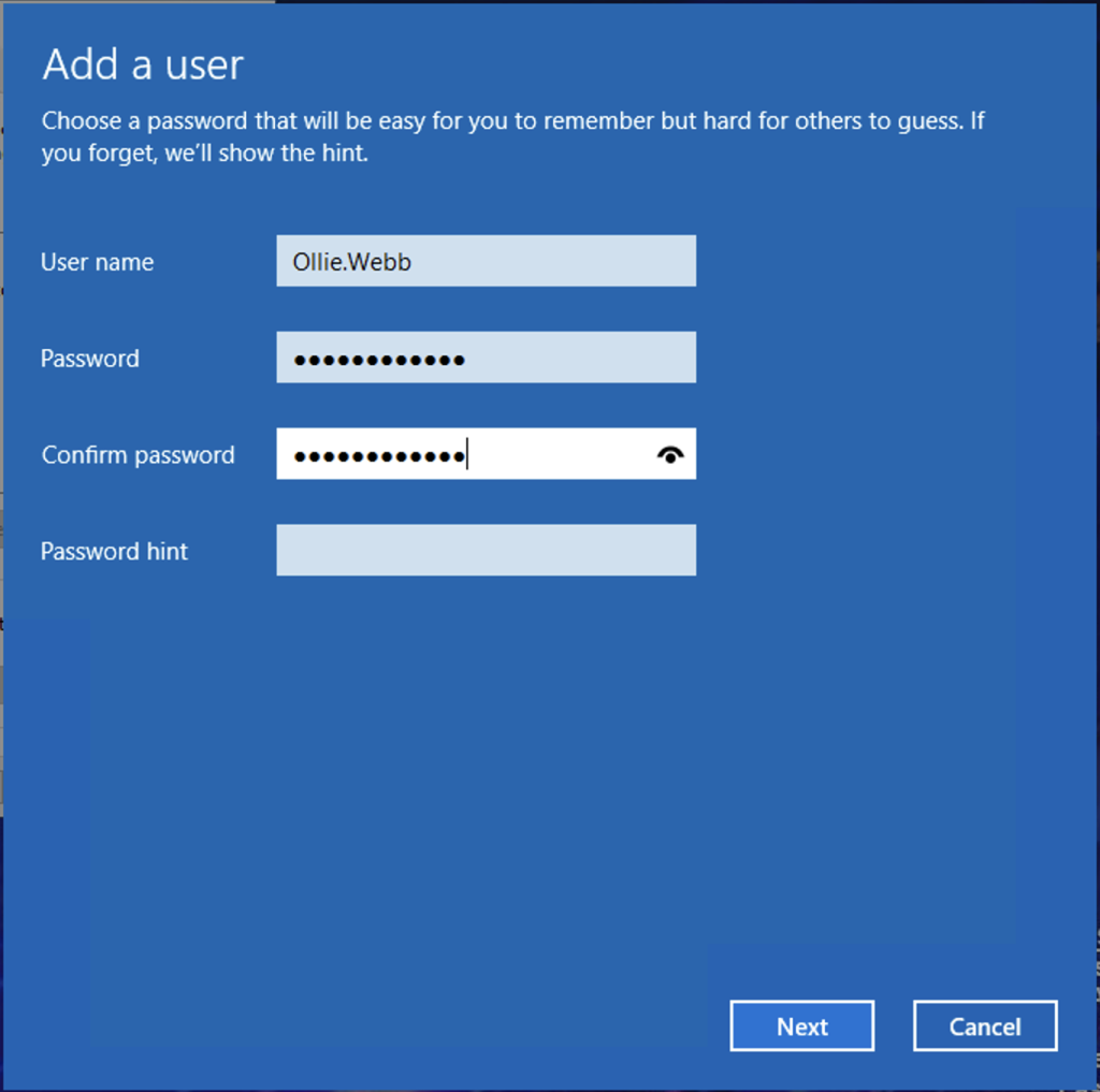 Press ‘Add’ and create the account